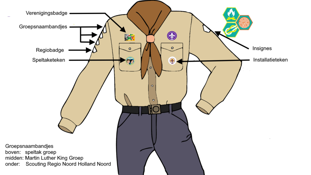 Bevers dragen een rode blouse, de Welpen een groene, de Padvindsters en Verkenners een beige en de Explorers een donkerrode. Stammen dragen een specifieke blouse. De blouse krijg je niet bij je installatie, maar moet voor de tijd aangeschaft worden. In het gebouw en onder het kopje downloads op onze website vind je het bestelformulier. Samen met de leiding vul je dit formulier in en wordt deze aan de penningmeester gegeven om te bestellen. De blouse kan ook los besteld worden via de Scoutshop. Alle benodigde insignes moeten via het bestelformulier besteld worden omdat deze niet te vinden zijn in ene online shop.